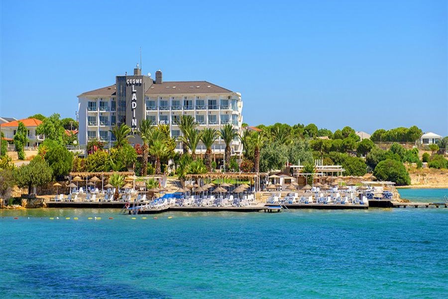 Çeşme Ladin Otel, Ege’nin ve Çeşme’nin en özel köşelerinden Dalyanköy’de, 1991 yılından bu yana Ege motifleriyle dekore edilmiş bir tatil deneyimi sunuyor. Gün doğumundan gün batımına kadar rengarenk anılar biriktirebileceğiniz bu otel, Çeşme’nin tüm güzelliklerini keşfederken huzurlu ve sakin bir konaklama imkanı sağlıyor.